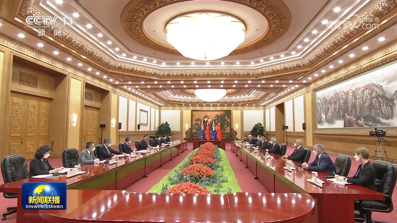 6月27日下午,国家主席习近平在人民大会堂会见来华进行正式访问的蒙古国总理奥云额尔登。