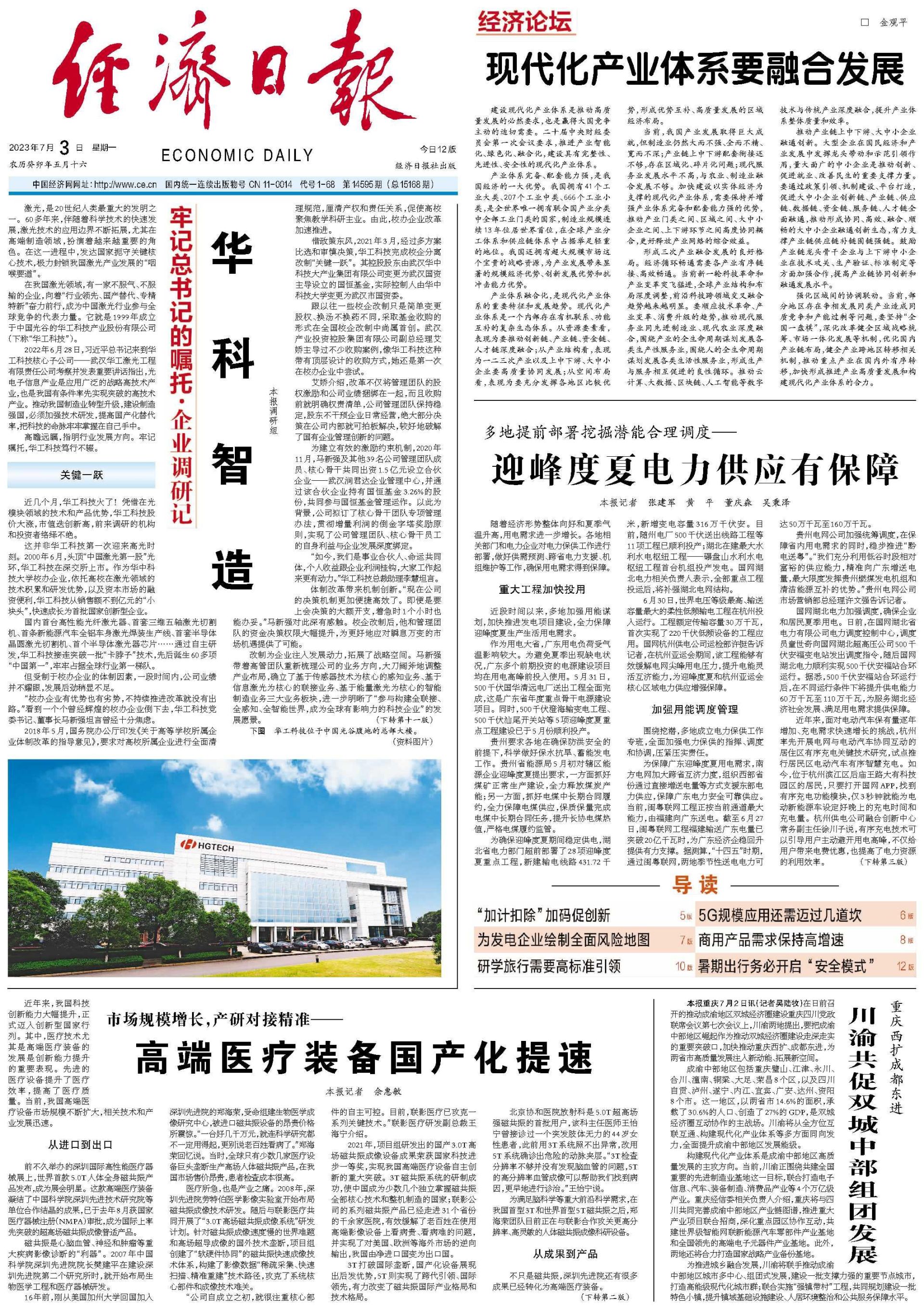 高瞻远瞩,指明行业发展方向。牢记嘱托,华工科技笃行不辍。