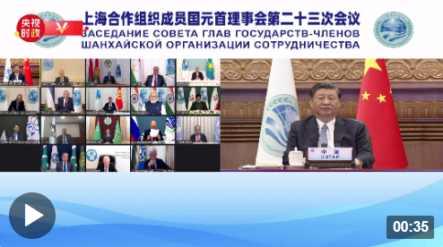 国家主席习近平7月4日下午在北京以视频方式出席上海合作组织成员国元首理事会第二十三次会议并发表题为《牢记初心使命 坚持团结协作 实现更大发展》的重要讲话。