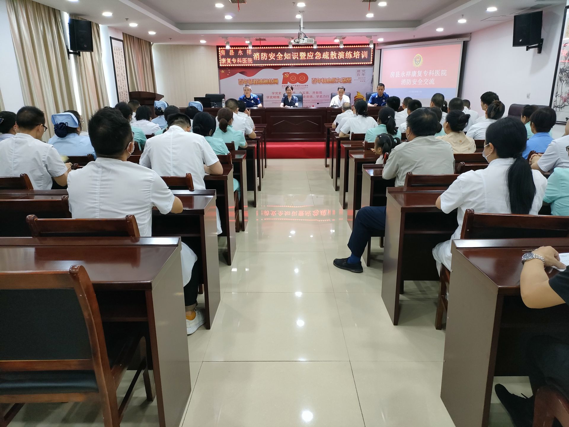 培训中,结合近期发生的医院火灾案例向大家详细阐述了医院火灾的危险性,深刻剖析了医院引发火灾的原因,针对医院人员流动性大且行动不便、建筑物使用功能复杂、用电医疗设备多及自防自救能力弱等特点,重点讲述了医院应履行的消防法律法规、发生火灾时该如何冷静应对、如何扑救初起火灾、如何正常报火警、如何组织被困患者快速疏散逃生等方面消防知识。同时要求消防安全责任人、管理人要加强管理,认真落实消防安全主体责任,增强医院消防安全隐患的日常自检自查,及时发现和整改火灾隐患,做到防患于未然。