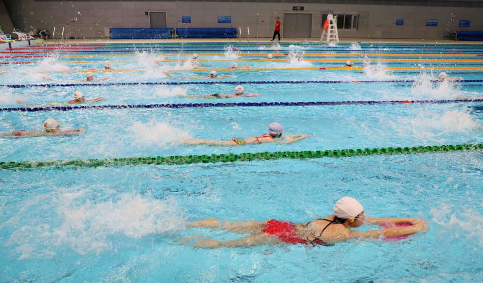 业余体校学生在奥体中心游泳馆训练。(全正 摄)