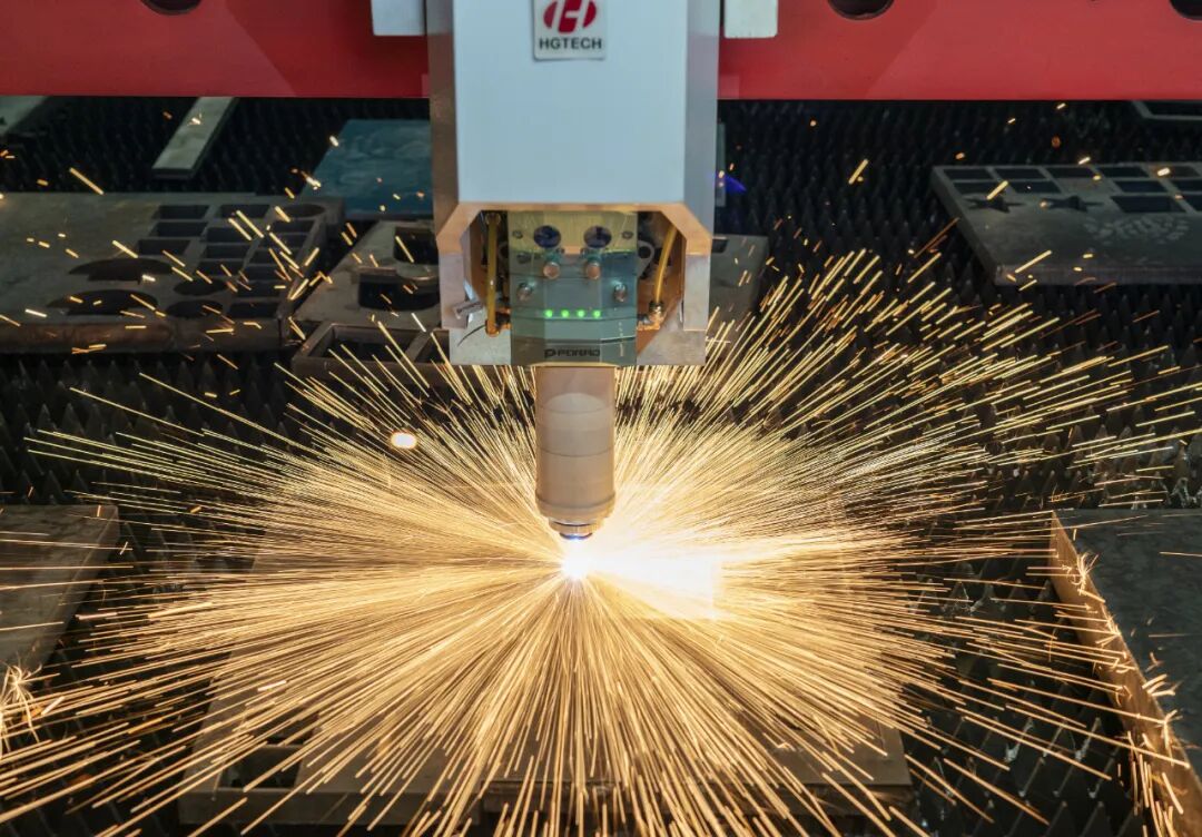 2022年3月9日,位于光谷科创大走廊的华工科技智能制造产业园,正在测试、校准的智能激光切割机切割钢板。(湖北日报全媒记者 魏铼 摄)