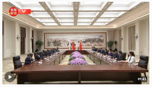 7月28日上午,国家主席习近平在成都会见来华出席第31届世界大学生夏季运动会开幕式并访华的圭亚那总统阿里。
