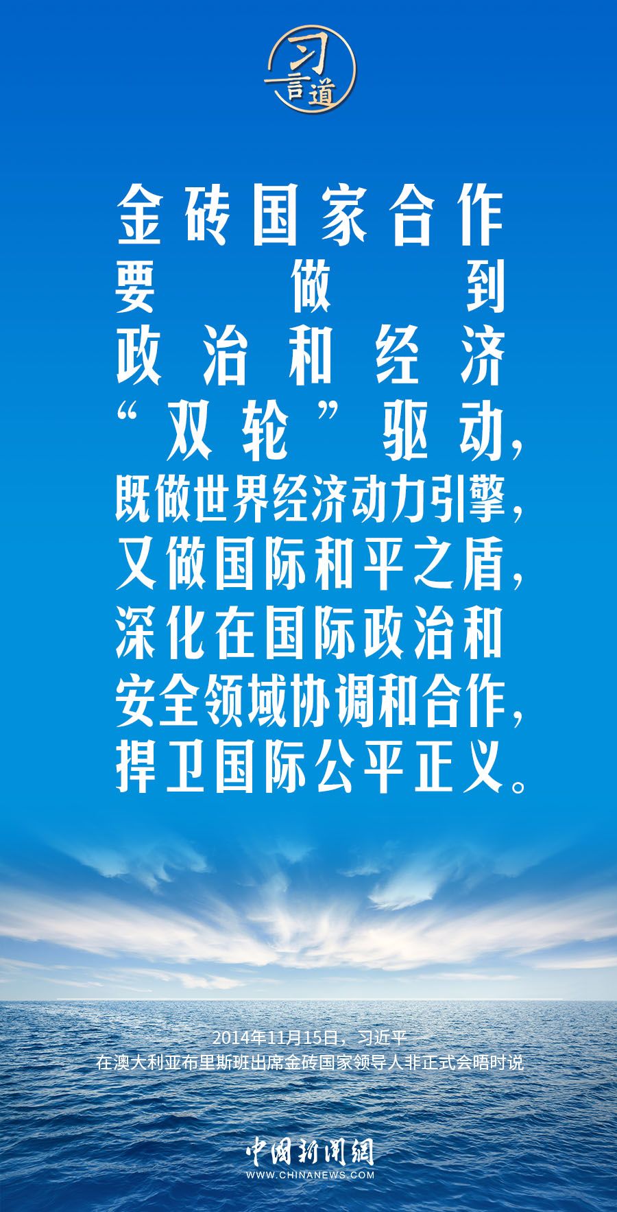 “中国有句古话,志合者,不以山海为远。”2013年3月,习近平就任中国国家主席之后出席的首场国际峰会,就是在南非德班举行的金砖国家领导人第五次会晤。彼时金砖合作机制尚处于起步发展阶段,习近平在会晤中全面阐述中国立场,为金砖国家团结合作指引方向。