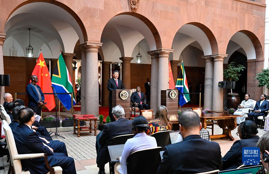 习近平强调,后天,我将和拉马福萨总统共同主持中非领导人对话会,这将是新冠疫情以来中非元首首次集体面对面会晤。我们期待同其他与会非洲国家领导人一道,擘画中非团结合作新蓝图,为中非全面战略合作伙伴关系发展注入新的强劲动力。
