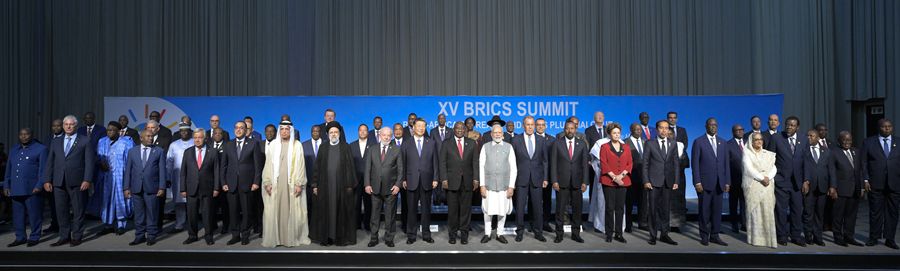 当地时间8月24日晚,国家主席习近平和南非总统拉马福萨在约翰内斯堡共同主持中非领导人对话会。