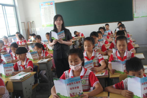 房县人民法院法官为东城小学学生宣讲未成年人保护法。