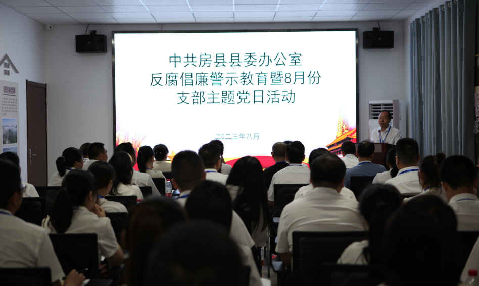 房县新闻网讯 通讯员 廖知秋 报道:为进一步筑牢家庭反腐倡廉防线,以好家风涵养好作风,促进好党风,提升干部党性修养和廉洁意识,营造清正廉洁的干事创业氛围,全方位多维度推动清廉机关建设。8月31日下午,县委办在县反腐倡廉警示教育基地开展反腐倡廉警示教育暨8月份支部主题党日活动,县委办全体干部职工及家属一同参加活动,县委办党支部书记洪运玖讲授廉政党课。