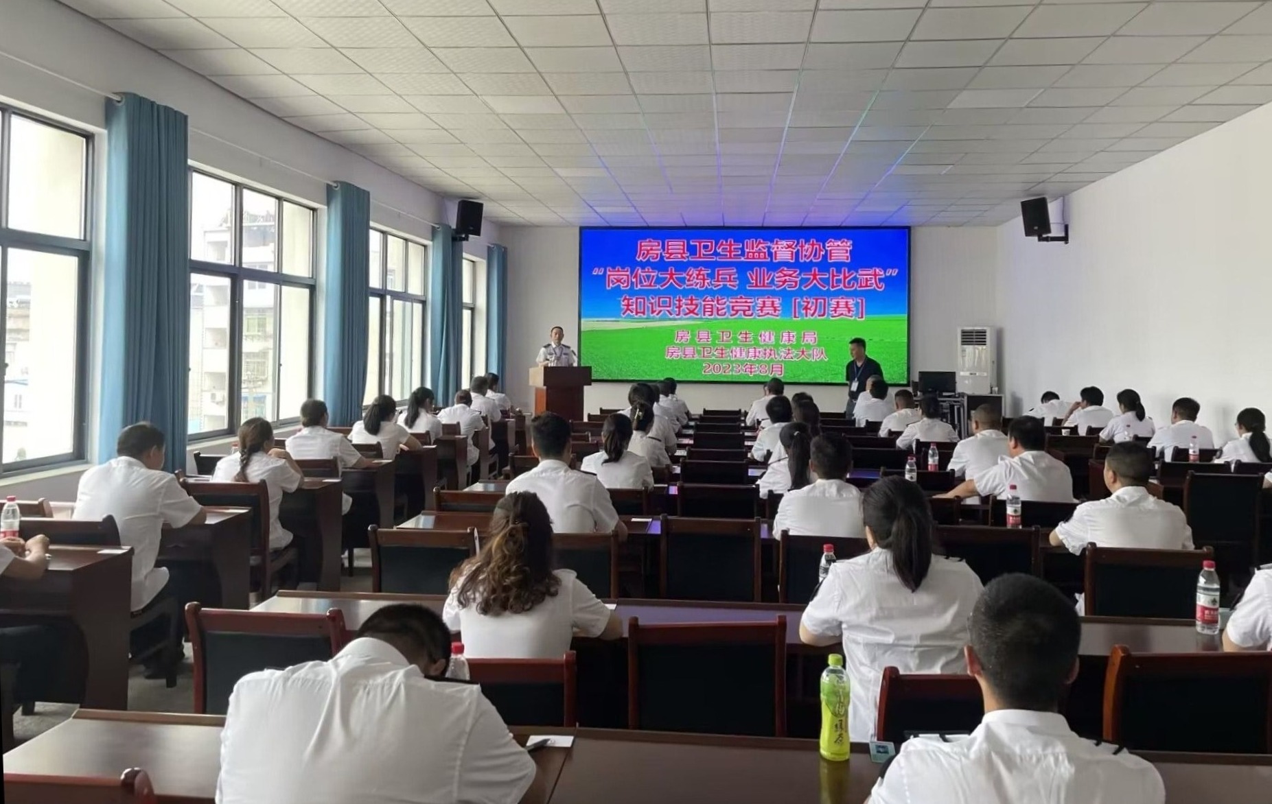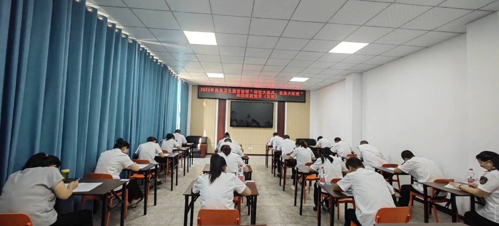 房县卫生健康执法大队按照“干什么练什么,缺什么补什么”的要求,结合全县卫生监督工作实际,制定了知识技能竞赛活动方案,全县新聘任的71名卫生监督协管人员全部参赛。此次竞赛分初赛、复赛、现场模拟监督检查三个环节,涵盖卫生监督专业知识及法律法规知识。