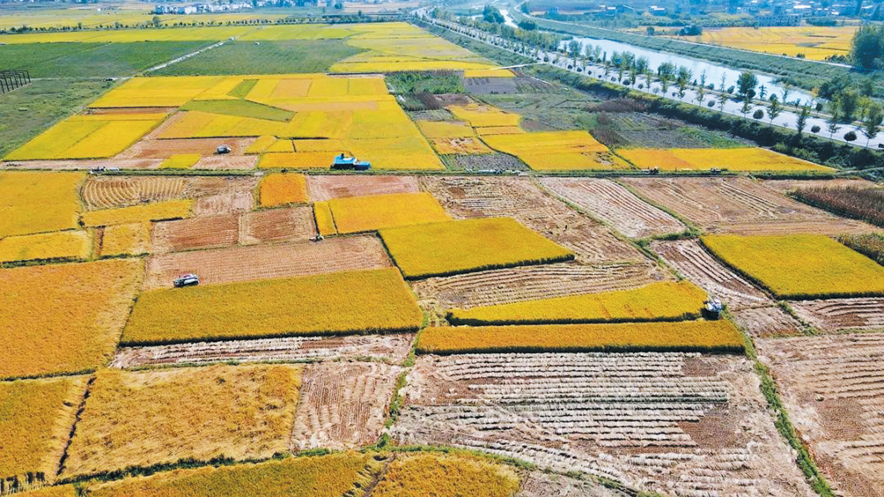 机械化收割稻谷