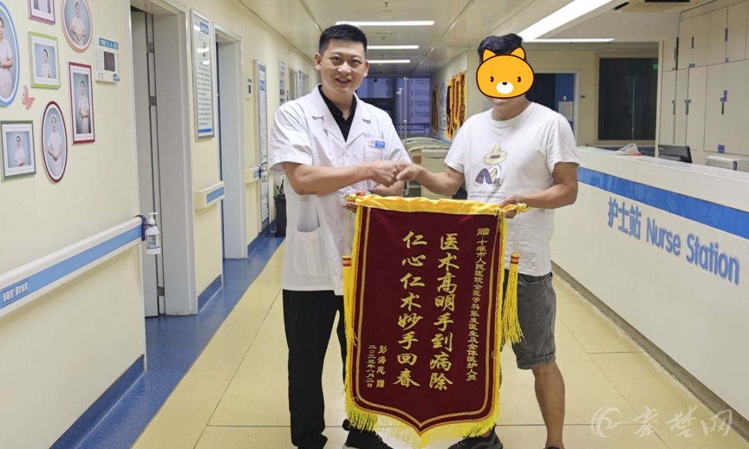 为感谢张发的诊治,彭先生亲自送来锦旗。