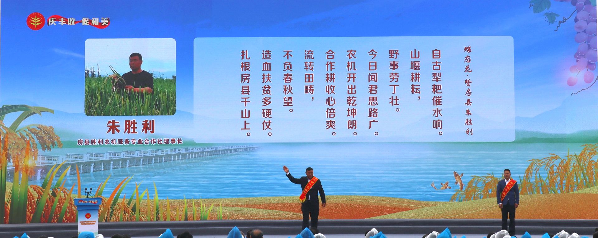 房县新闻网讯 记者 刘晶晶 通讯员 朱宏伟 报道:9月23日,秋分,是我国的重要节气,也是第6个中国农民丰收节。在丰收节湖北主会场荆州市公安县2023年度“湖北省十佳农民”颁奖仪式上,十堰市房县胜利农机合作社理事长朱胜利荣获“湖北省十佳农民”荣誉。