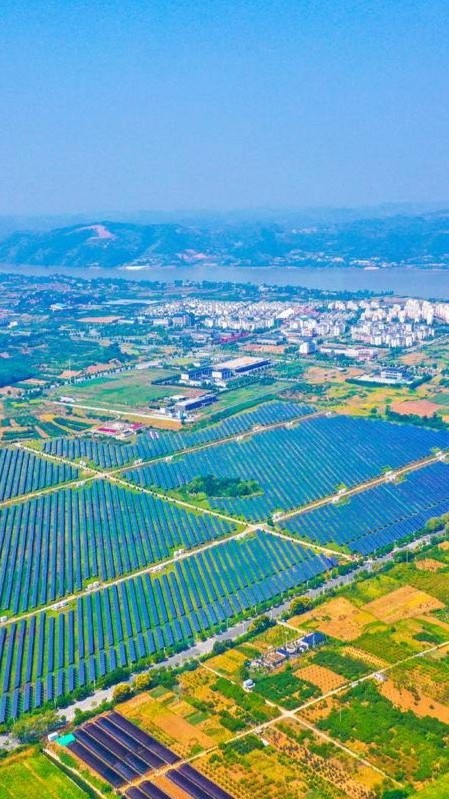 远眺十堰郧阳区柳陂镇金矿村光伏发电项目。(湖北日报全媒记者 田悦 通讯员 李尚菲 李渊 摄)