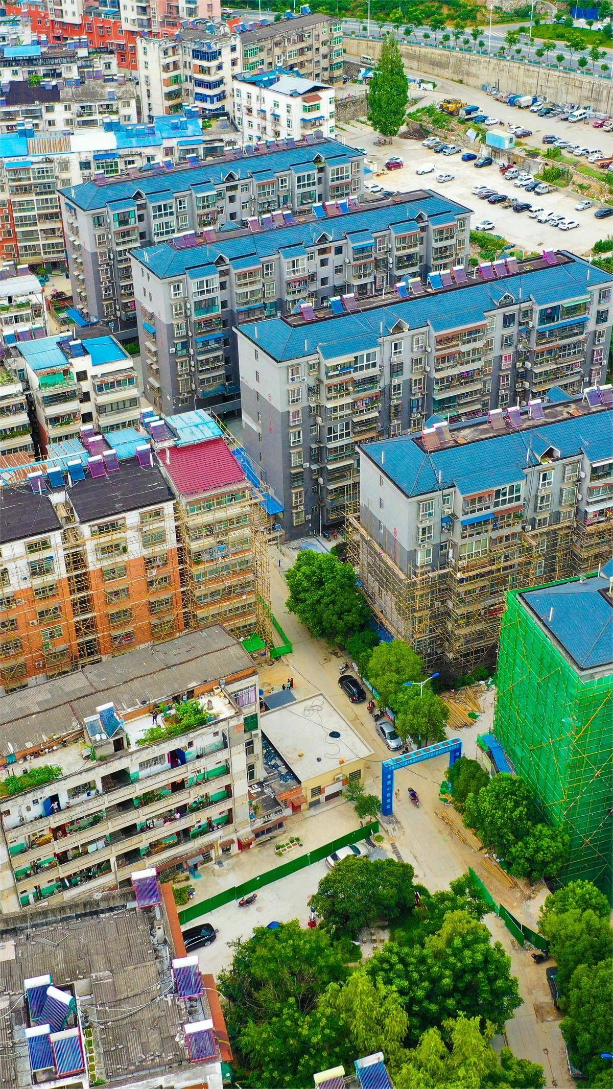 十堰郧阳区城关镇菜园社区郧阳东路片区老旧小区在改造中。(湖北日报全媒记者田悦 通讯员李尚菲 摄)