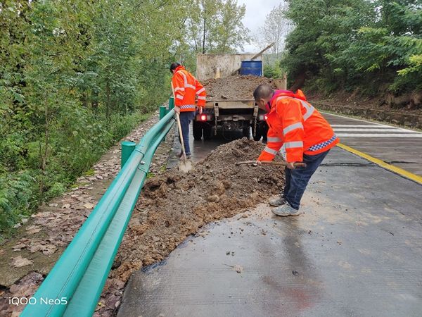 “中秋”“国庆”假期以来,我县持续降雨,同期达到往年数倍,山体蓄水饱和,国省道沿线多处边坡塌方,导致交通中断18处,降雨导致全县国省干线道路坍方7.8万立方米,损毁路基3.2万立方米、路面0.6万平方米、驳岸挡墙1.4万立方米,造成直接损失约1200余万元。灾情发生后,我局始终牢记县委“第一时间除险保畅,确保群众安全出行”的工作要求,迅速启动应急预案,全员上阵开展水毁抢通作业。假日期间累计投入应急保畅人员627人次,巡查车辆56辆,巡查道路450余公里,投入清障机械设备43台,清理边坡塌方、落石累计268处、2万余立方米,2小时内抢通中断道路15处,设置警示标志26 处,全力保障群众平安出行,牢牢守住了公路安全底线,未发生一起人员伤亡和财产损失事故。