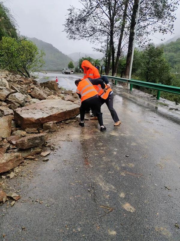“报告!G209国道北线柳树桠段倒塌路树、坍方已清理,道路可以正常通行。”“青万路、榔沙路路面泥石流、落石已清理,已半幅通行,周边已做好警示。”“大板路、十竹路受困车辆已得到救援,现场无人员伤亡。”在局党组的统一指挥调度下,多条干线公路被一一抢通,有效缓解了旅游高峰期道路通行压力。