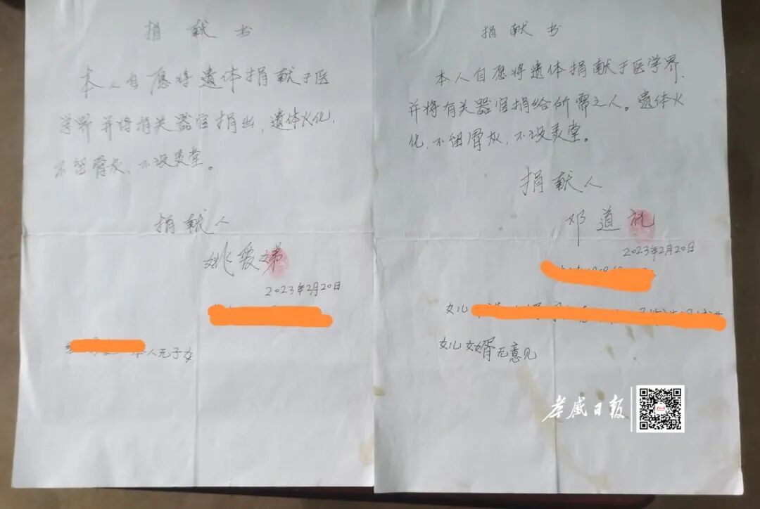 2018年,邓道礼光荣脱贫,如今,每月领取养老金,还有435元的低保,老两口生活十分美满幸福。为了实现尽其所能为社会作贡献的愿望,于是,邓道礼夫妻二人征得女儿、女婿和家人的支持理解后,今年2月20日,夫妻同时选择用捐献遗体和器官的方式奉献人间大爱、挽救他人生命、服务医学发展。