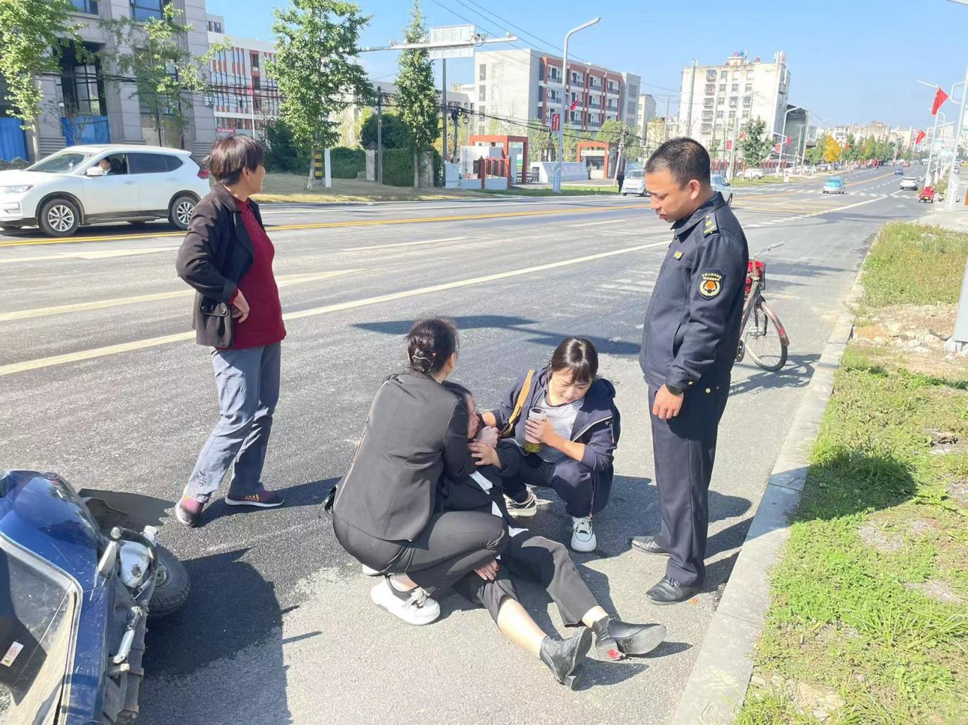 房县新闻网讯 通讯员 刘霞 报道 :10月16日上午,县城管执法局环卫所职工黄俊峰在辖区开展日常巡查时,偶遇工业园路口一辆三轮车与一辆电动车相撞,电动车车主倒在路边,身上多处受伤流血,表情十分痛苦。黄俊峰立即上前了解情况,和热心群众一起将受伤人员扶起,随后拨打120急救电话,并帮助其联系到家人。大约十几分钟后救护车赶到了车祸现场,黄俊峰又协助医护人员将伤者送上救护车。伤者经过及时救治,目前已无大碍。