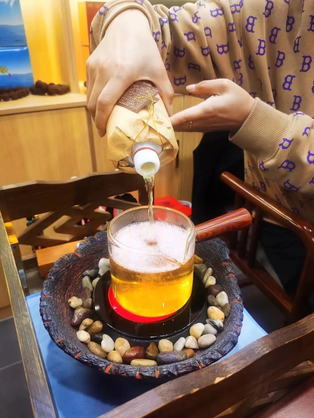 一口温润清香的房县黄酒,丝丝清凉的鲜味抵达舌面,口腔中饱满的糯米的微微清甜,滑落腹中,而后升腾起舒服的温热感,既可解辛辣,又可去油腻,还能保护肠胃,促进消化。