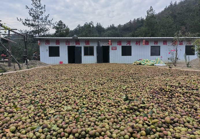 “当前房县油茶林硕果累累,同时茶花漫山遍野,农户采收的茶果摊晒房前,漫山的茶花是明年茶果丰产的基础,我们也是抢在花开的时节邀请省林业科学研究院专家为我们制定的油茶授粉配方,由林业局森防站无人机专业团队,采取“专业+科技”模式进行油茶授粉,为明年油茶丰产打好基础。“县林业局产业办负责人介绍道。