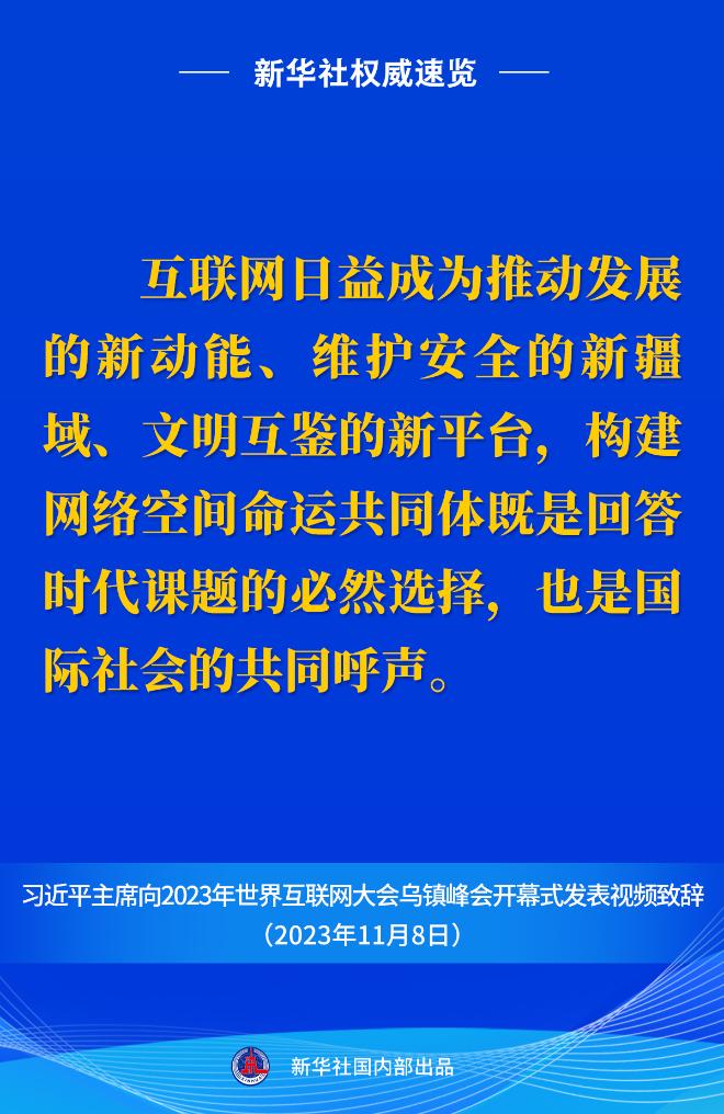 新华社权威速览丨习近平主席向2023年世界互联网大会乌镇峰会开幕式视频致辞金句