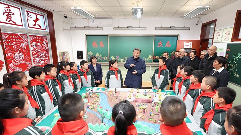11月10日上午,习近平总书记考察北京灾后恢复重建工作,在妙峰山民族学校亲切慰问烈士刘捷、熊丽的家属。