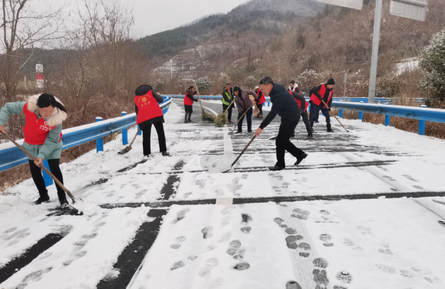 为保障辖区内高速公路出口行车安全,镇主要领导一大早来到土城收费站进行指导,在高速公路出口与省道交接道路两旁,设置警示牌,提醒村民注意行车安全,在严寒中筑起一道“温暖防线”。同时,组织镇村党员干部和志愿者们,带上铁锹、扫帚等除雪工具,将服务区至收费站的冰雪一点点清除。