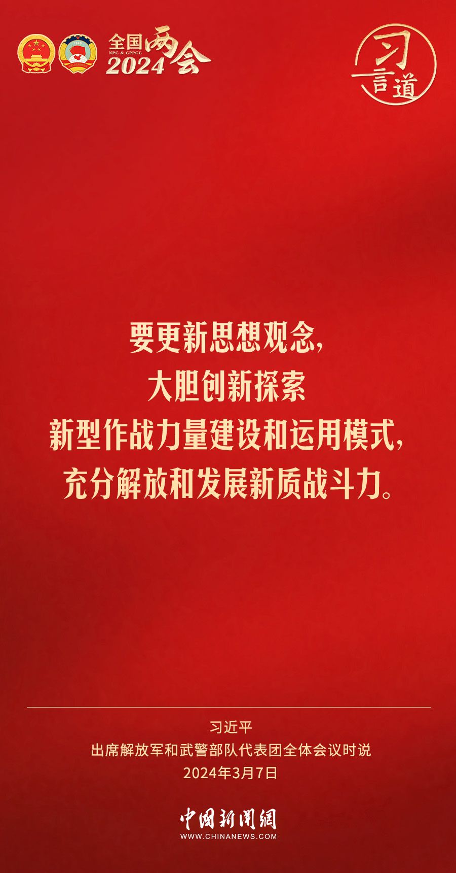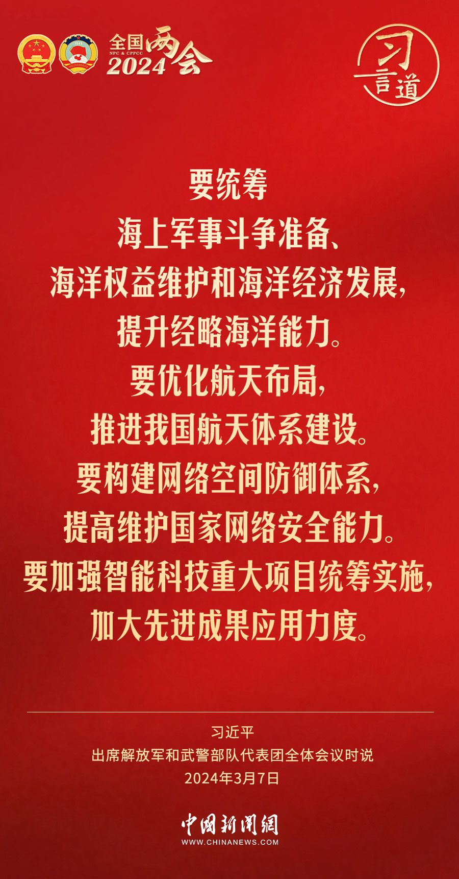 中共中央总书记、国家主席、中央军委主席习近平7日下午出席十四届全国人大二次会议解放军和武警部队代表团全体会议,习近平强调——