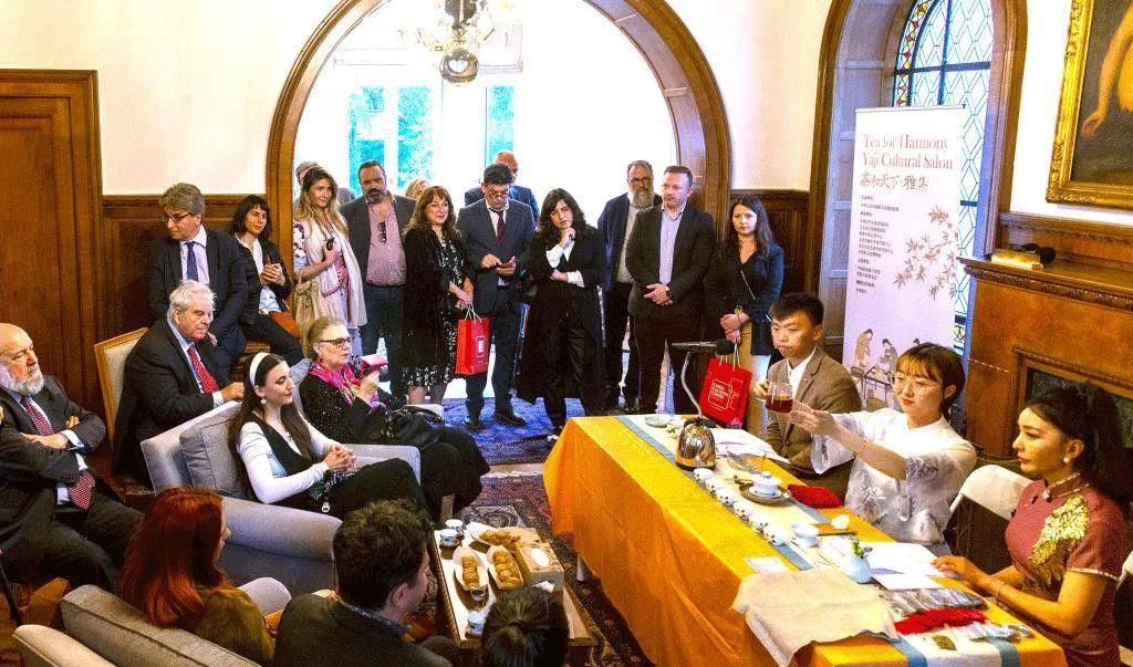 △2023年5月,希腊雅典,人们观看中国茶艺表演。