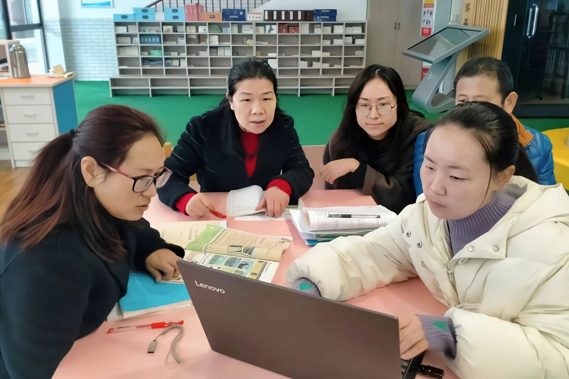 接下来,各学科教研员深入教师办公室查看了教学设计、作业批改等教学常规工作,并与教师们进行了现场座谈,进一步深入探讨了教育教学现状。随后在五楼会议室查阅了学校教育教学工作落实情况,查看了教学计划和总结、教研组活动、校本教研和教学常规检查等教学教研常规档案。
