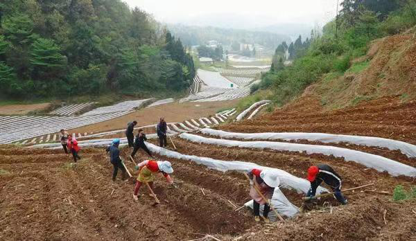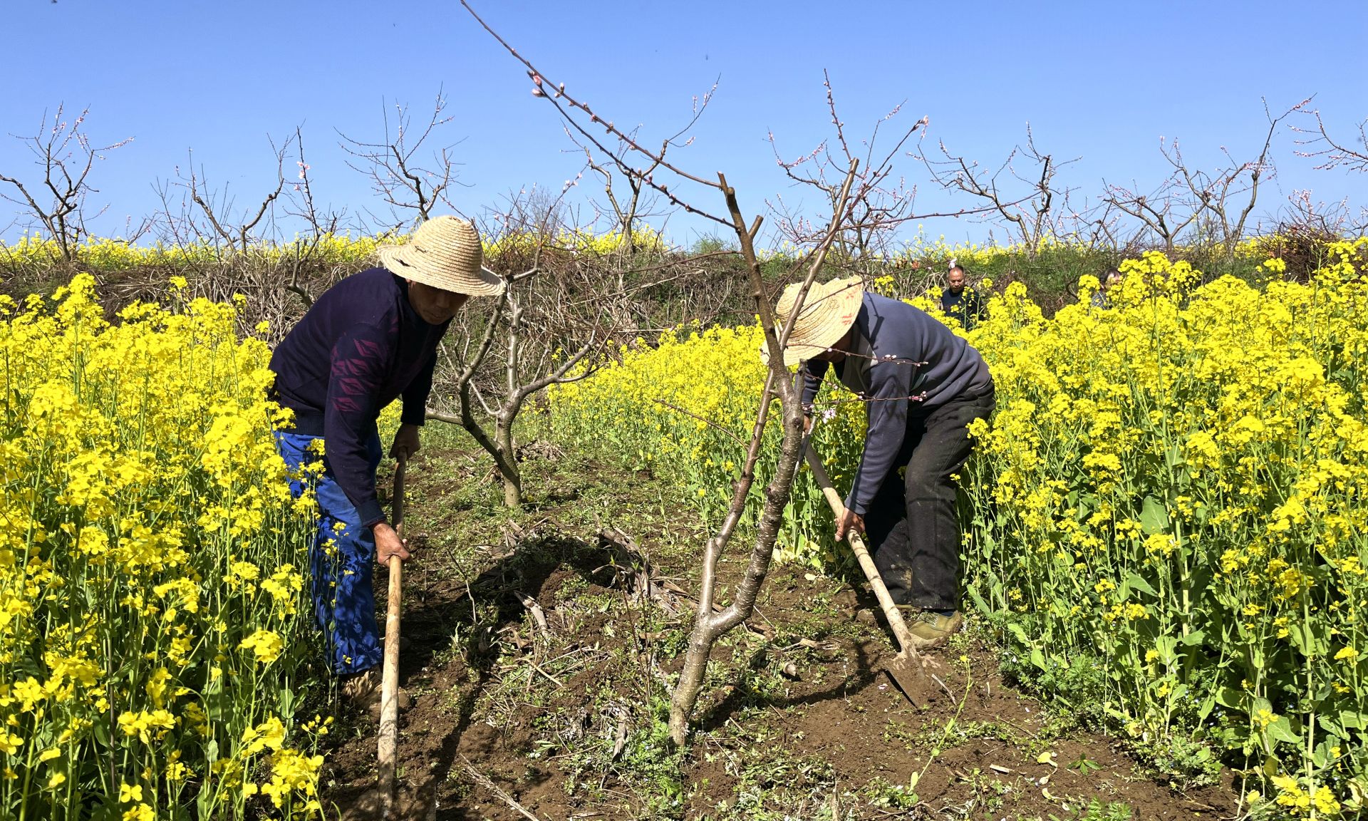 村民们穿梭在花海里除草、开沟,一派繁忙景象。那一朵朵盛开的花,如同农民摘果收获时的笑颜,那一团团如金如霞的花簇,映照着高川村产业兴旺的道路。“目前的当紧任务是把围沟和腰沟修出来,修沟注意要根据这个坡度,上面要浅、下面要深,保证雨季来临时,水能够顺利排出去......”赵云武正在田间指导农户们如何管护“花海”,为油菜、黄桃丰收奠定基础。