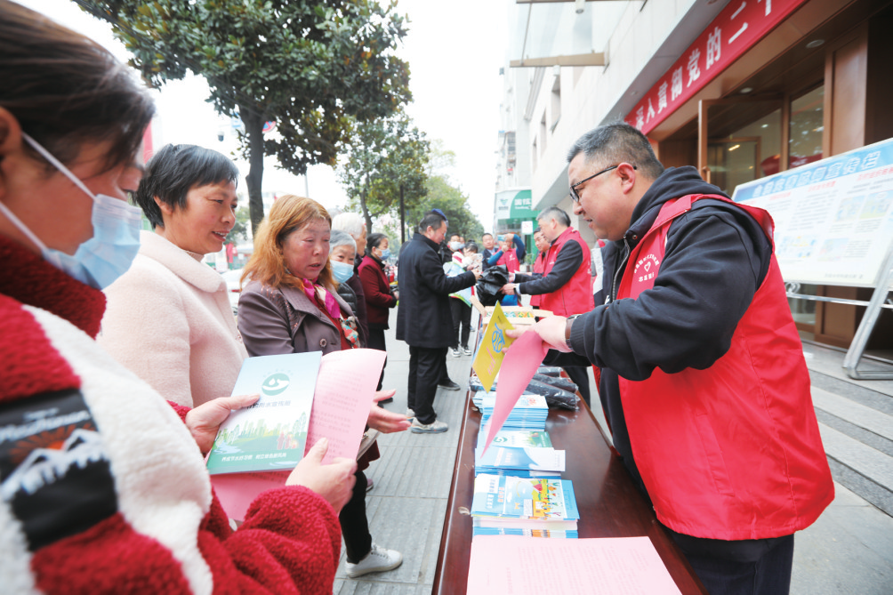 ◀开展“世界水日”“中国水周”宣教活动,为居民发放节水宣传册。
