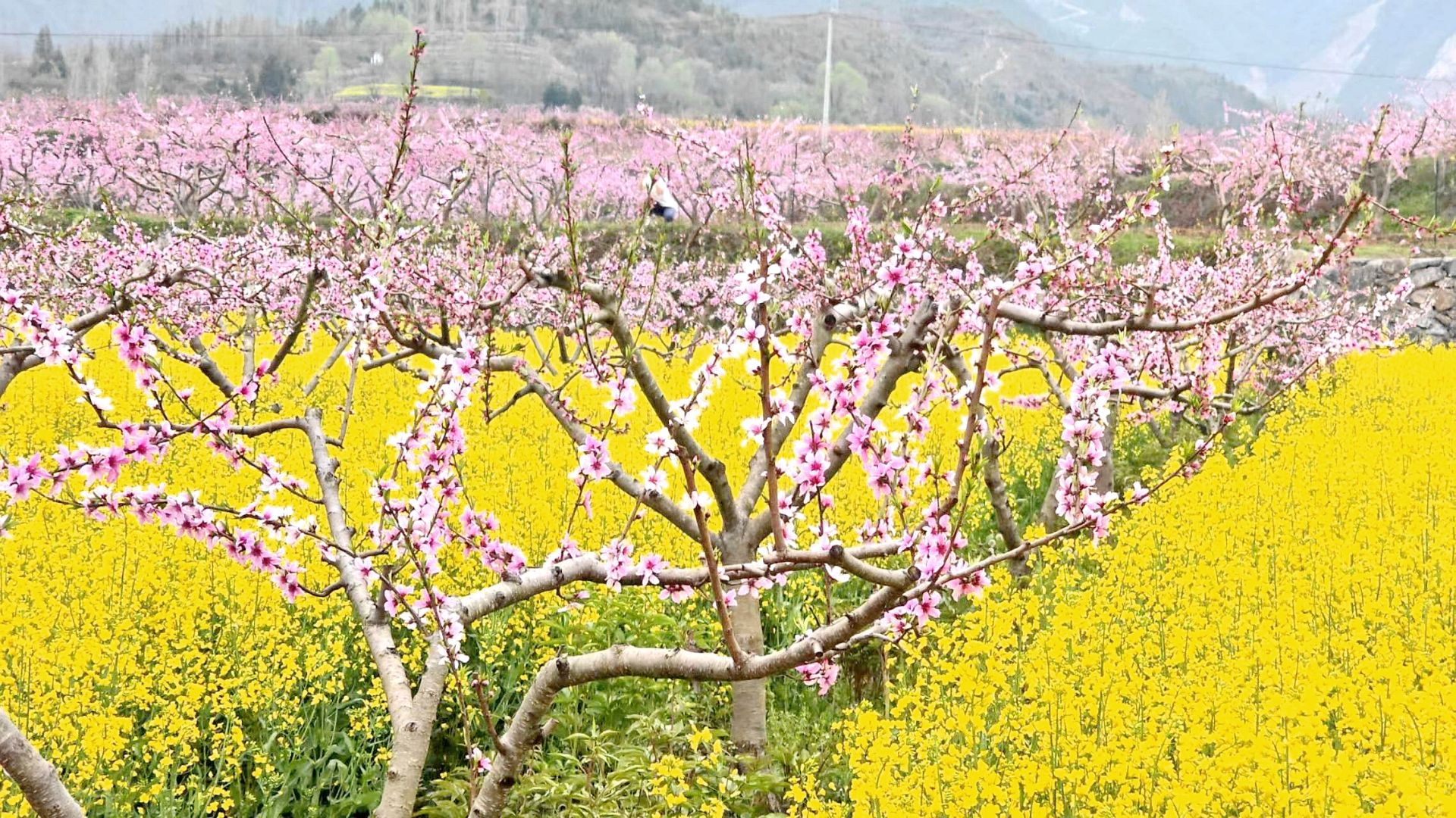 走进化龙堰镇种植基地,一棵棵桃树枝头开满粉色的花朵,与满田的油菜花交相辉映。寻花而至的游客们徜徉在桃花、油菜花海中,或拍照打卡或驻足赏花,汇聚成一幅春意盎然的桃园画卷。
