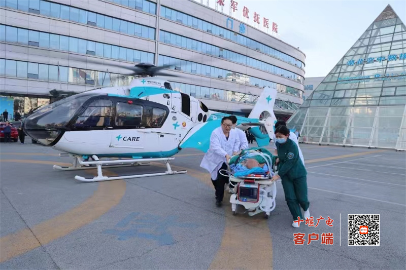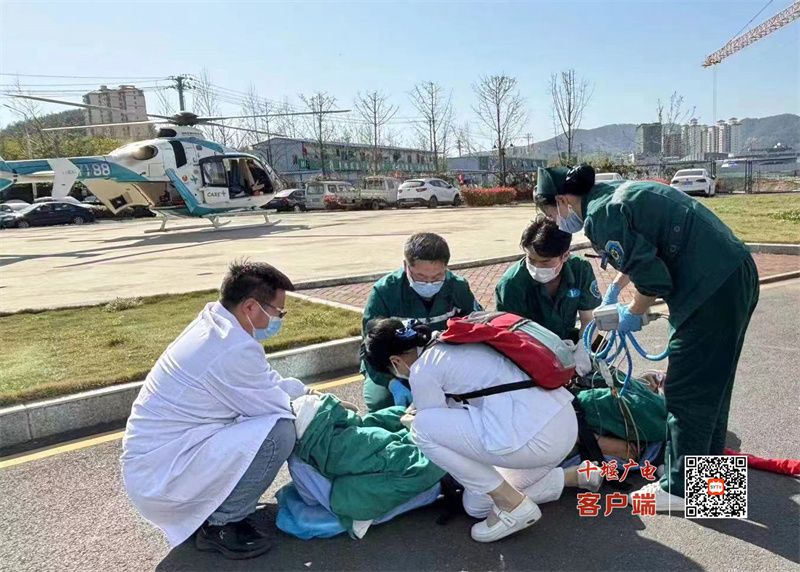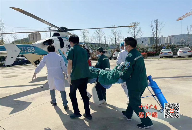 15:17,十堰人医直升机从健康广场起飞;15:50,直升机在竹溪指定位置降落,随机医护人员立即查看患者病情,并对其进行紧急处理;16:10,直升机再次起飞,16:43,顺利返院。单趟仅用33分钟就将患者顺利接回,为患者争取了宝贵的救治时间。