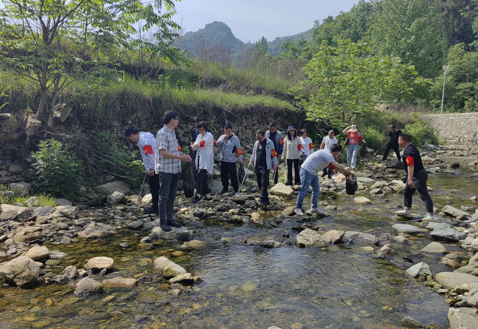 房县新闻网讯 通讯员 柴长国 杜勤 报道:4月27日,房县人社局组织20名志愿者,到包联村土城镇堤坪铺村开展“‘河’我在一起守水护水洁美家园”活动。志愿者先后来到方家畈水库参观、走进易沟河道捡拾垃圾、敲开农户家门宣传守水护绿知识,用扎实有效的行动,为一库碧水永续北送贡献人社力量。