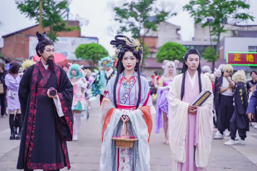 在这一片欢声笑语中,汉水女神、瑶、云中君、嫦娥等传说中的仙姿,也仿佛穿越时空而来,众人纷纷停下脚步,争相与之合影,队伍蜿蜒曲折,几乎贯穿了整条古街。这一刻,古老与现代交融,现实与幻想交织,共同编织成一幅幅动人心弦的画面,让人流连忘返。