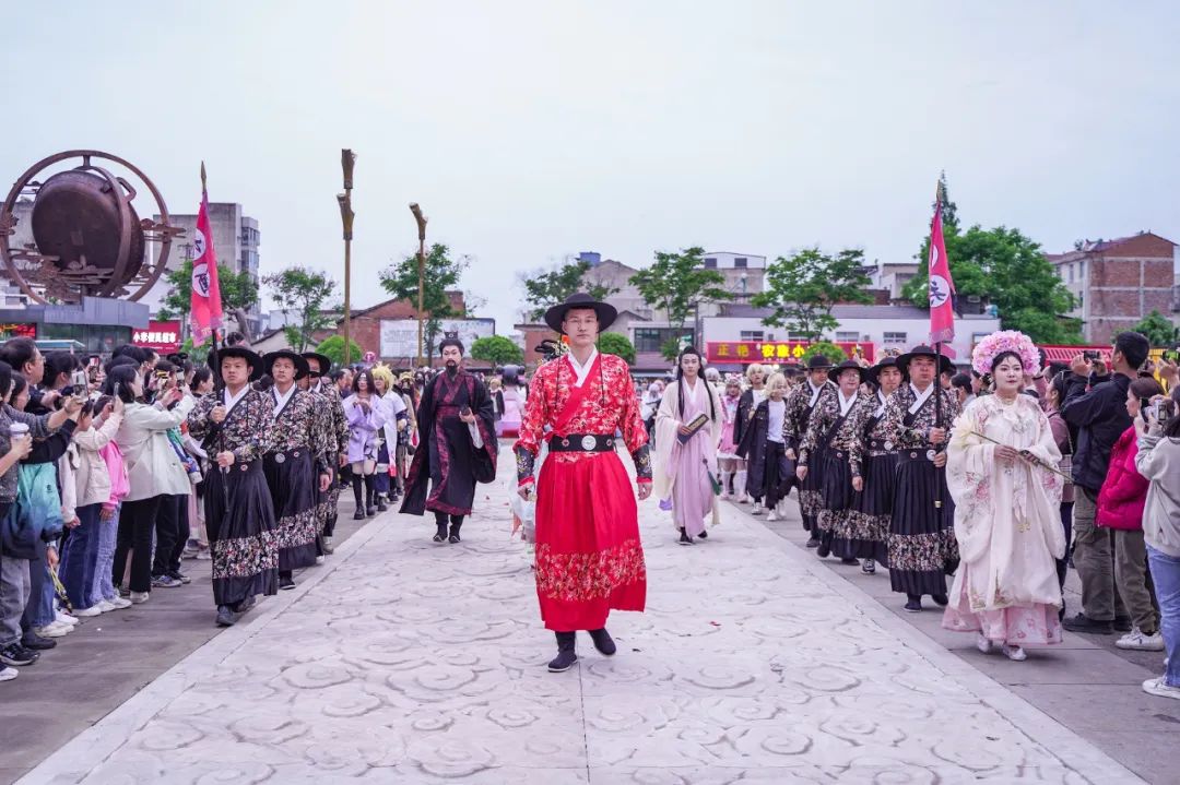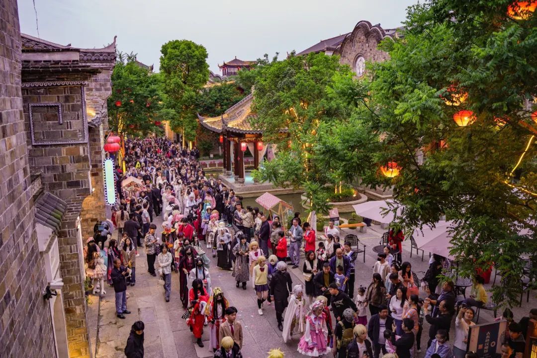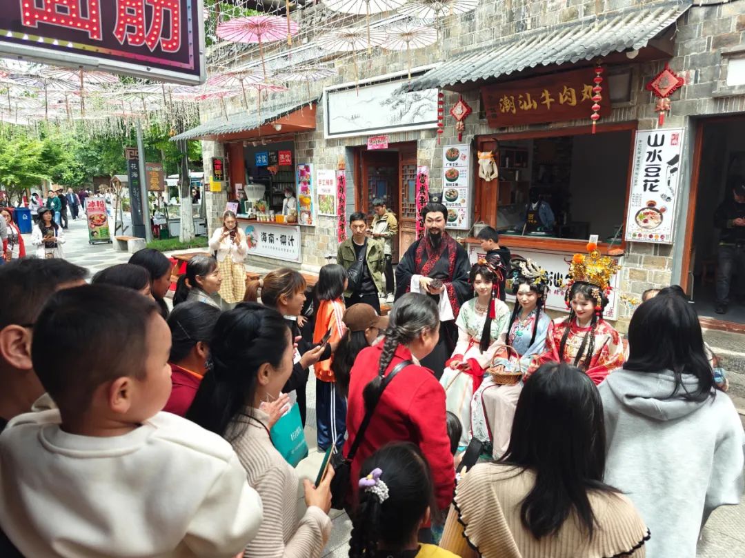 喧嚣中,一支精心装扮的NPC互动队伍如同磁石,吸引着游人与市民的目光。