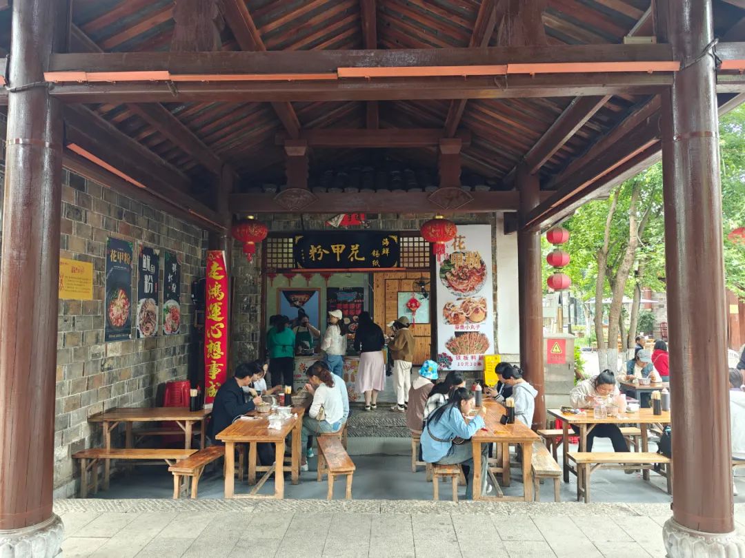 随着游客市民不断涌入,西关印象街区里人头攒动,处处欢声笑语,将节日热闹和喜庆的气氛推向高潮。街区内不仅有精彩活动表演,还有不少特色美食,臭豆腐、biangbiang面、台湾旋风薯塔、陕西凉皮、神农兔等鲜香诱人,吸引众多游客市民前来品尝,在唇齿留香中体验民俗文化。