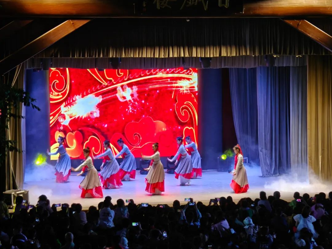 这时,缕缕悠扬的琴音从不远处的戏台轻拂而来,犹如天籁之音,不经意间俘获了周遭众人的好奇与心神。循着这美妙的旋律迤逦前行,眼前豁然开朗,台上正上演着一出经典的古代戏剧,演员们的唱腔婉转动人,服饰华丽。