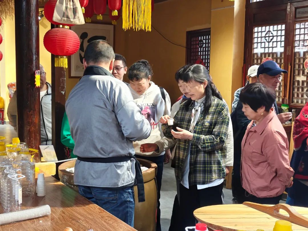 曲罢,大家纷纷争着抢着上前合影,曲娘,带着温婉的笑容,亲切地张开双臂,不仅邀请每一位来宾品尝她家工坊精心酝酿的黄酒,更似一位博学的向导,娓娓道来每一滴佳酿背后的故事与匠心独具的酿造工艺。
