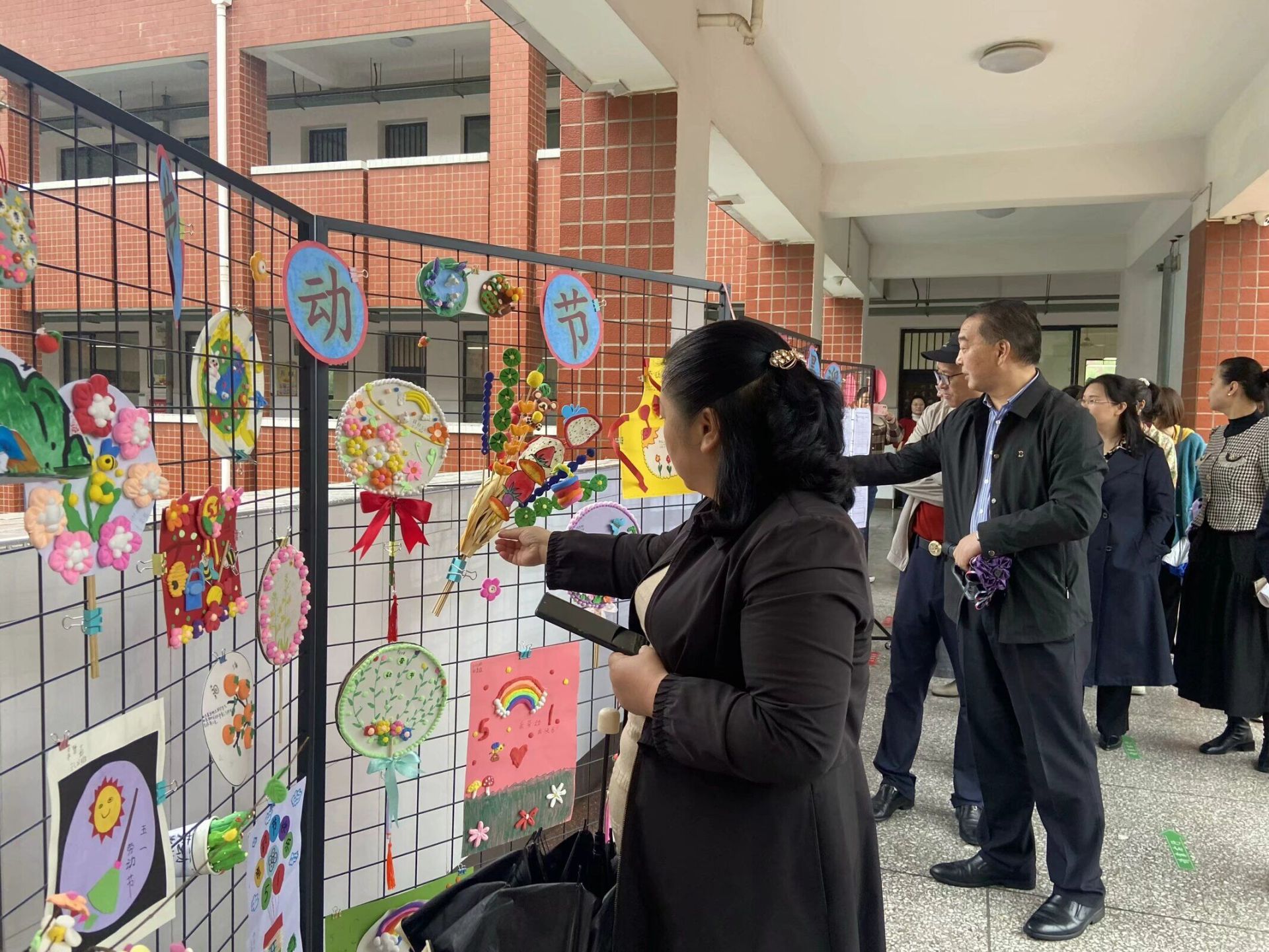 观摩团队在天明校区小小解说员的带领下,先后参观了校园文化建设和各年级展示的“五·一”劳动实践成果。一年级以“水果拼盘我会摆,多彩生活我动手”为主题,家校联动指导学生将各种各样的水果拼成丰富的图样。二年级展出的树叶贴画、五谷贴画及多彩石绘无不展示着学生们的创意巧思。三年级以“翰墨飘香迎五一,书画欢庆劳动节”为主题,展示了学生们在老师的指导下所创作的精美书画作品。四年级布展了“手工艺术长廊”,展出了学生们取材于生活用品制作的精美手工,彩泥扇面、红包灯笼、折纸花束等等作品吸引参观者们不时驻足欣赏把玩。五、六年级也展出了优秀劳动主题征文和思维导图。各年级根据学生的年龄实际,确定适宜且新颖的劳动实践形式和内容,围绕一年级一主题,形成了一年级一特色。观摩团队还随机进入多个班级,深入了解了班级文化建设、小组合作管理、五好学生评价等常规工作,并参观了天明校区全新打造的劳动实践基地“种植园”。