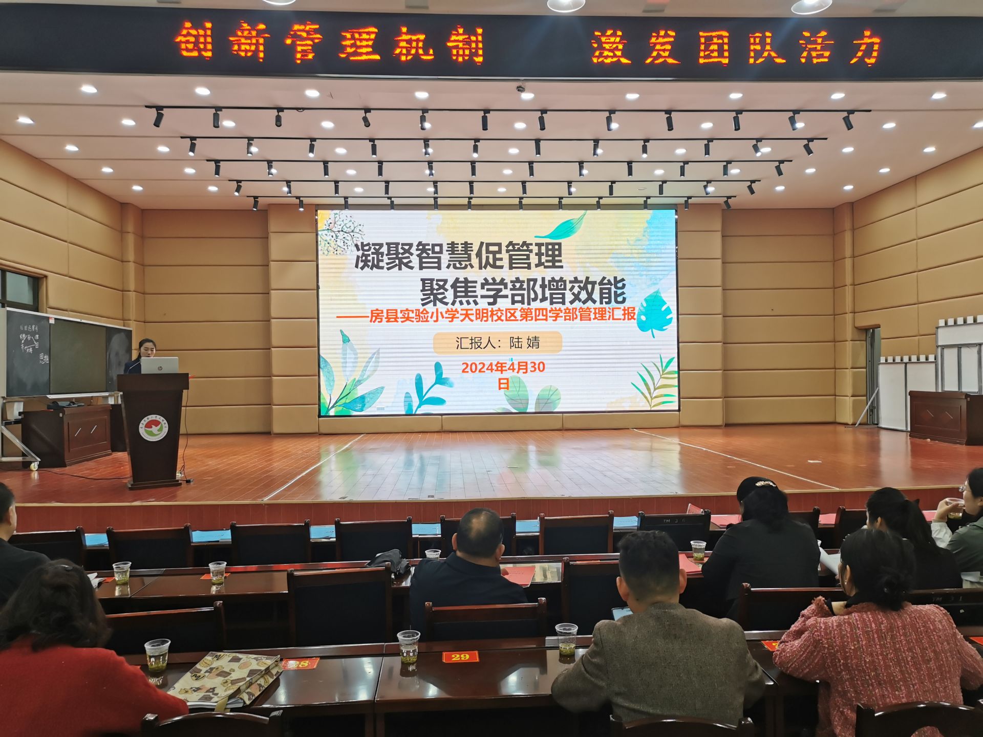 参观结束后,听取了天明校区学部管理团队人员的交流发言,分别从学部自主管理、教学工作、德育实践、宣传工作四个方面介绍了天明校区的工作措施及成效,同时也提出了在工作推进过程中所存在的问题和疑惑,与实小校区观摩团队的成员进行了互动交流。