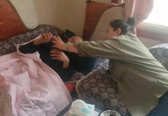 房县民康医院医护人员为抗美援朝老兵曾学昌做全面体检,曾学昌虽是期颐之年,却一如既往地保持着军人气魄。