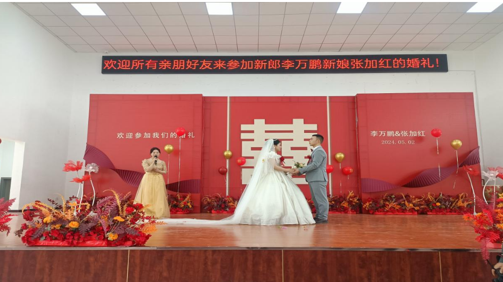 今年五一期间,青峰镇文化大礼堂喜气洋洋,一场温馨简约而庄重的婚礼正在这里举行,亲朋好友欢聚一堂,共同见证一对新人步入幸福的婚姻殿堂。