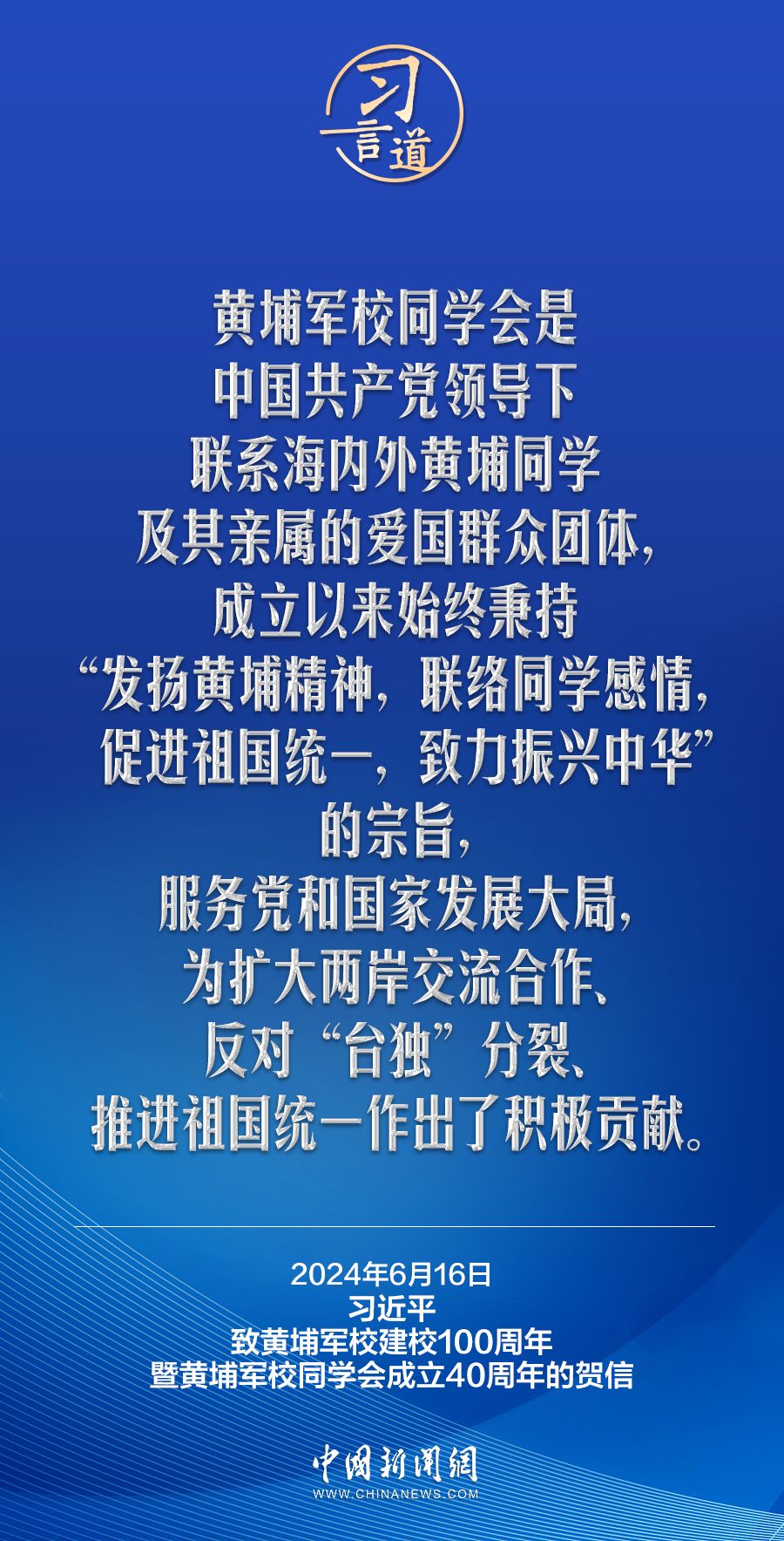在黄埔军校建校100周年暨黄埔军校同学会成立40周年之际,中共中央总书记、国家主席、中央军委主席习近平发来贺信,代表中共中央向黄埔军校同学会表示热烈祝贺,向广大海内外黄埔同学及其亲属致以诚挚问候。习近平指出——