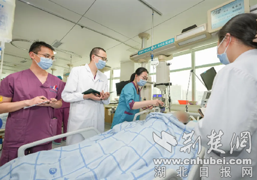 十堰市人民医院急危重症中心主任、重症医学科主任黄光庆当机立断,在征得患者家属同意后立即启用“救命神器”ECMO辅助心肺复苏术。医护团队在超声引导下顺利置管,20分钟后,暗红的静脉血从患者静脉流出,经过体外膜肺氧合后,鲜红的血液再回到体内。ECMO维持相对稳定后,立即转入重症医学科继续治疗。