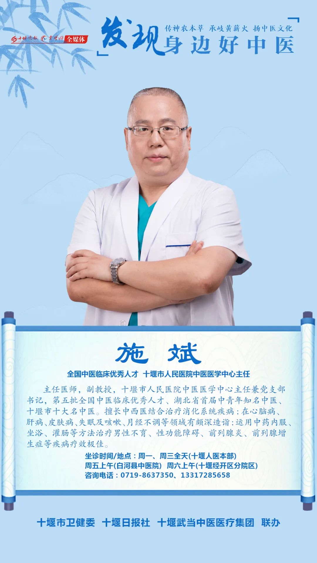 1992年,施斌以优异的成绩从三峡大学中医系(原宜昌医学高等专科学校)毕业,被分配到十堰市人民医院中医科就职。作为一名中医人,施斌将辨病与辨证、内调与外治、传统手法与现代技术相结合,精准用药、标本兼治,多年来已帮无数患者解除过难言的痛楚。