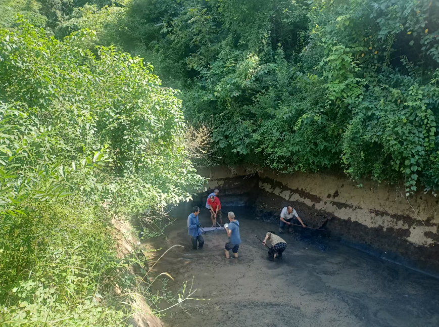 在抢修现场,由渭沟村群众、村干部、党员等自发组成的抢修小分队正在有条不紊地清淤中。顶着高温天气,大家挥动着手中的铁铲、木耙、铁耙等工具除杂草、铲砂石、清淤泥、通沟渠,个个干劲十足,现场一派热火朝天的景象。在为期3天的义务投工投劳后,饮水蓄水池已清淤完毕,受损渠段已顺利恢复通水。另外,为保障水渠稳定供水,村委会还将安排相应人员做好后期管护工作,确保水渠畅通,水流稳定。