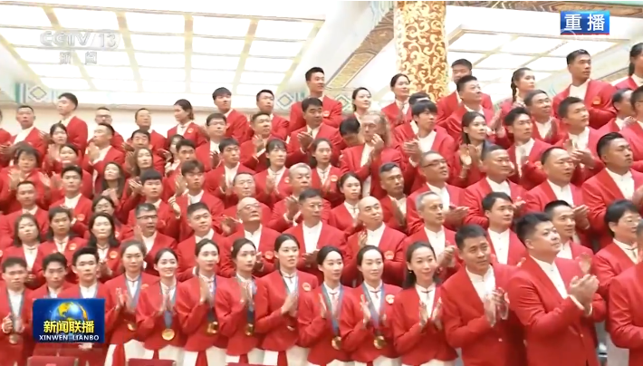 中共中央总书记、国家主席、中央军委主席习近平20日下午在人民大会堂接见第33届夏季奥林匹克运动会中国体育代表团全体成员。