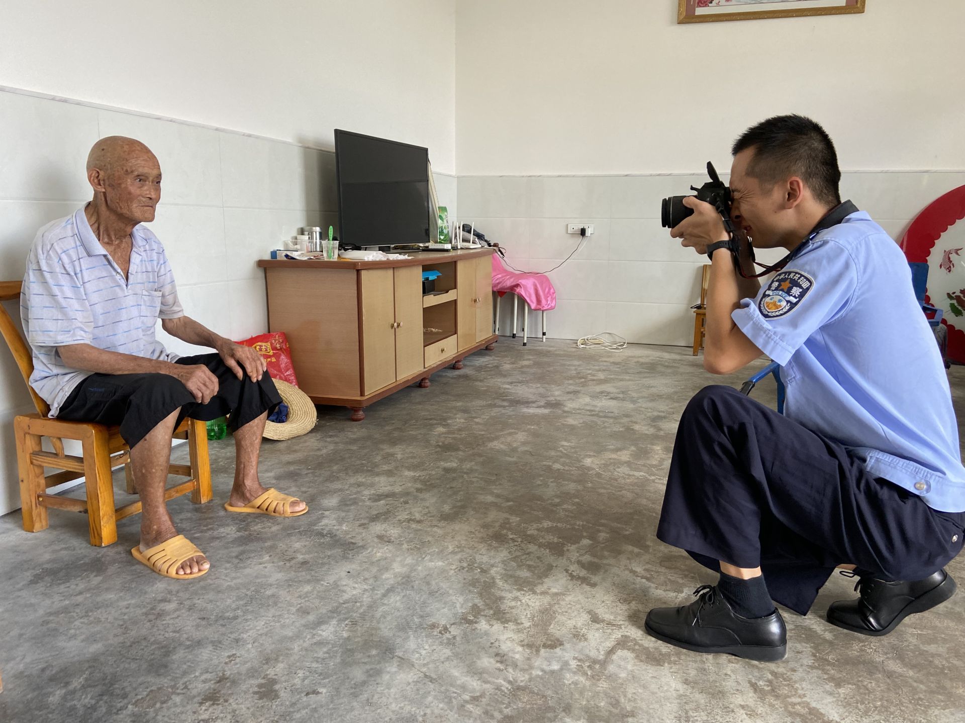 “同志你好,我家老爷子身份证不知道什么时候丢了,他年纪大了,去镇上有点不方便……”8月19日,军店派出所民警在辖区开展“户户走到”活动中,接到辖区村民施某的求助。据了解,施某(86岁,常年患病)行动不便,子女在给施某办理银行、养老业务时发现身份证丢失,施某本人腿脚不好又不便去军店镇党群服务中心办理,遂即向民警求助。民警当即表示可以为施某上门办证,并与其子女约好时间,中午户籍民警携带设备为其办理了身份证。
